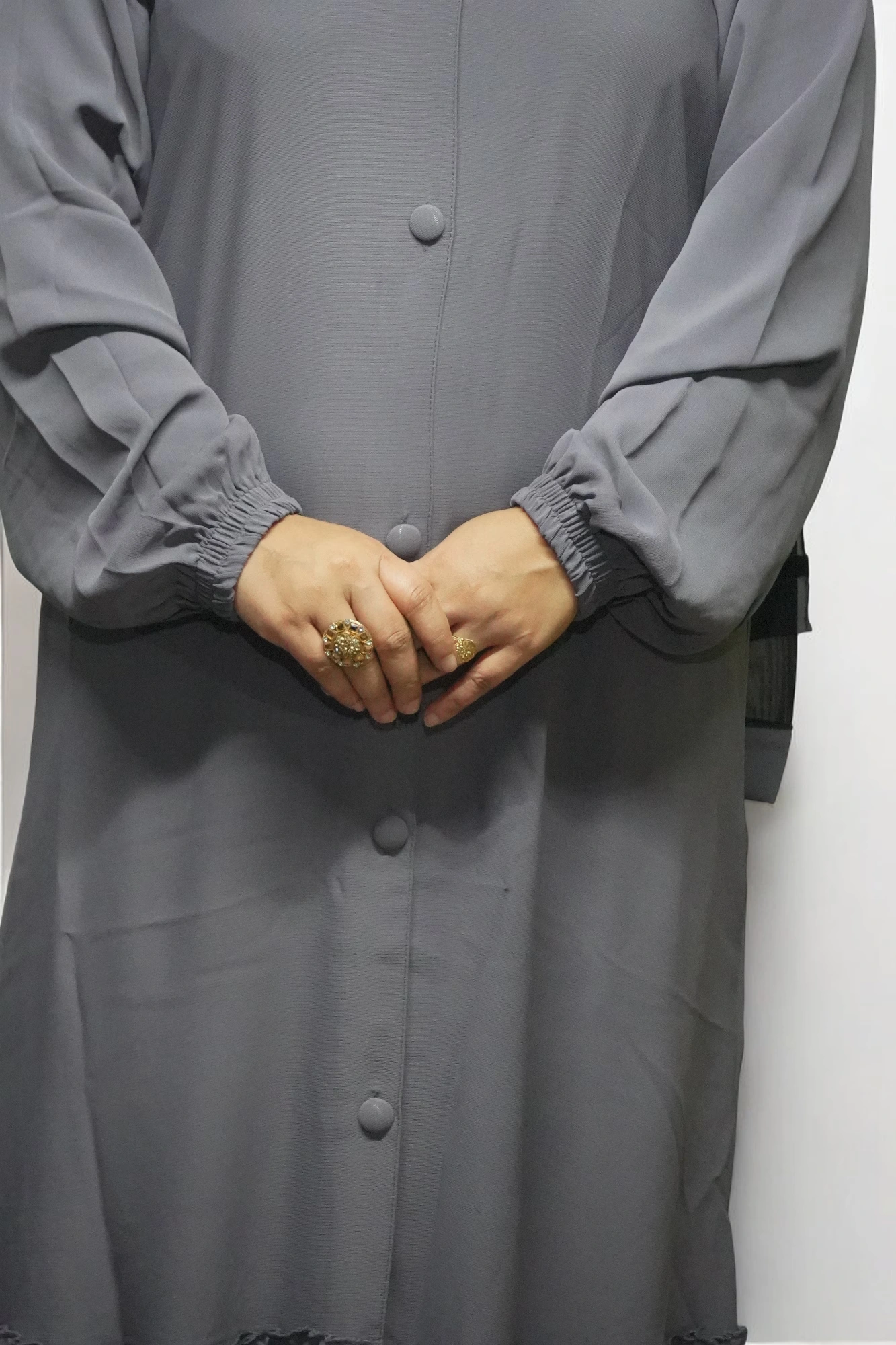 Be the first to review “Burkha FULL BUTTON CHUN BOTTOM in GRAY-STONE Large Size And (Dupatta 68X26)”