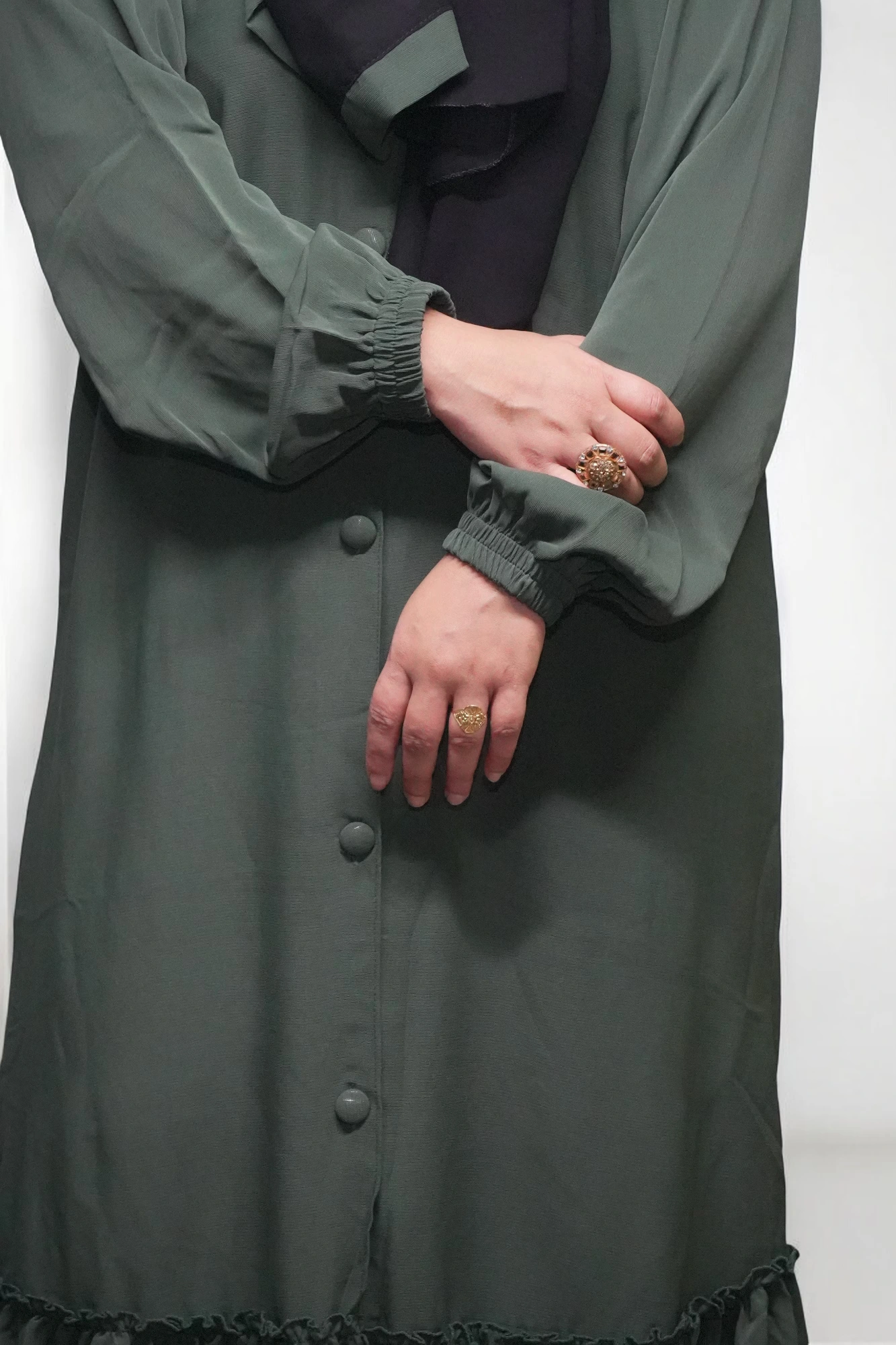 Burkha FULL BUTTON CHUN BOTTOM in Olive-Green Large Size And (Dupatta 68X26)