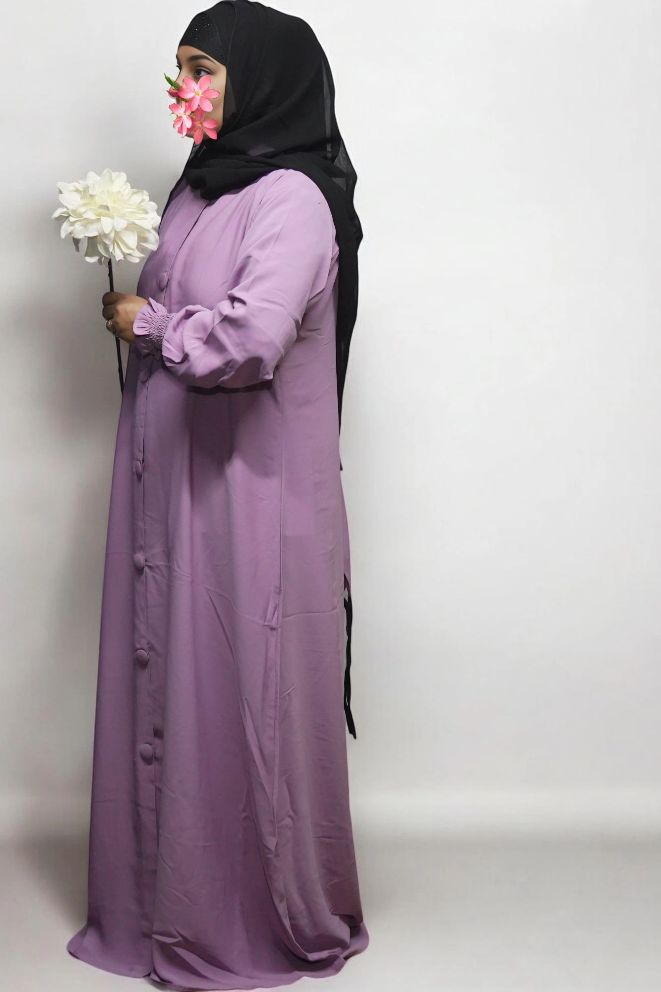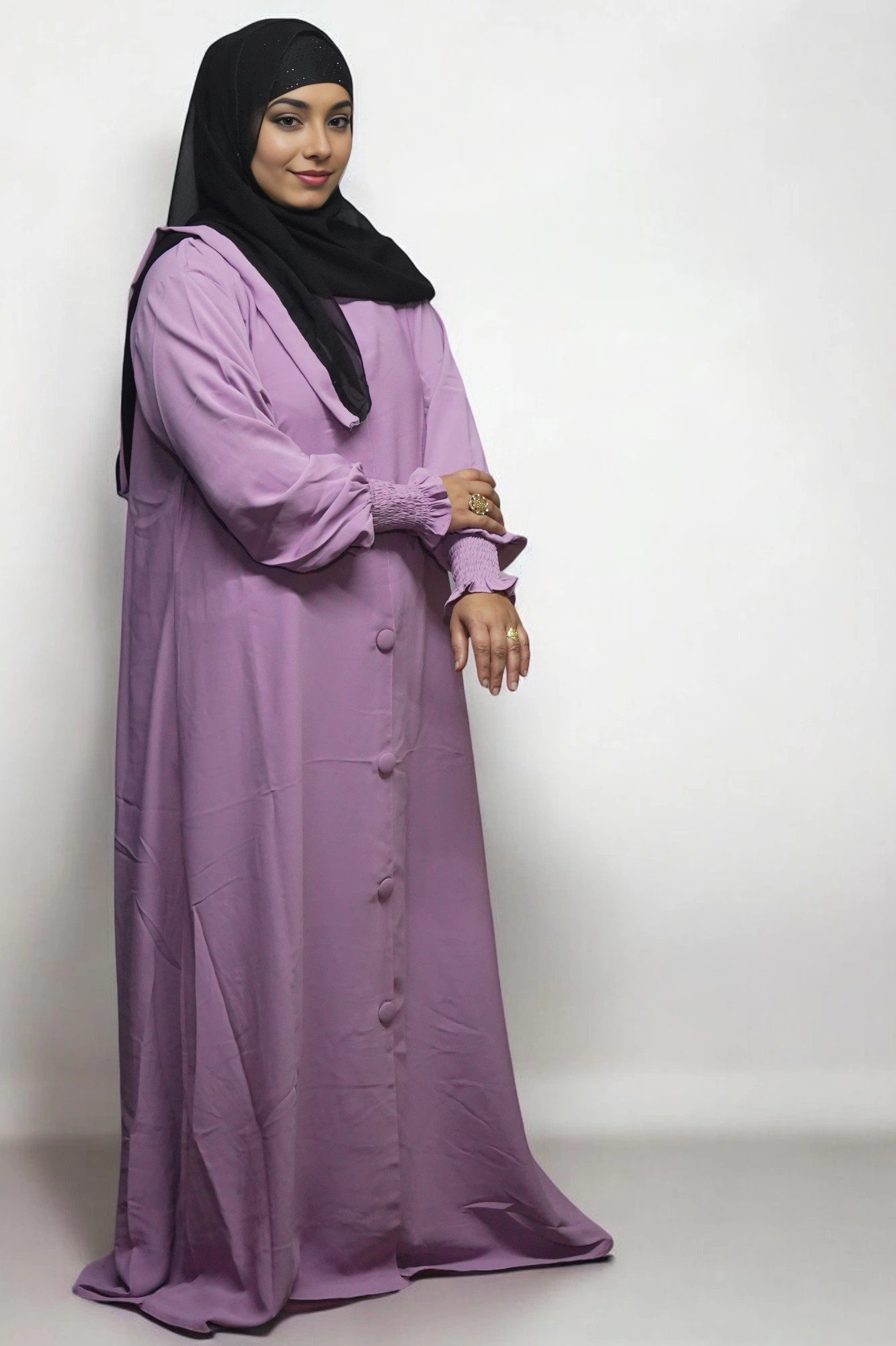 Envelop yourself in the majesty of our Burkha FULL BUTTONS OPEN in Purple, a regal garment that combines captivating color, stunning design, and exceptional value. The rich, vibrant hue of purple has a profound effect on the senses, evoking feelings of Quality, creativity, and wisdom. The relaxed fit and flowy design of this beautifully crafted Burkha make it perfect for formal events or special occasions.