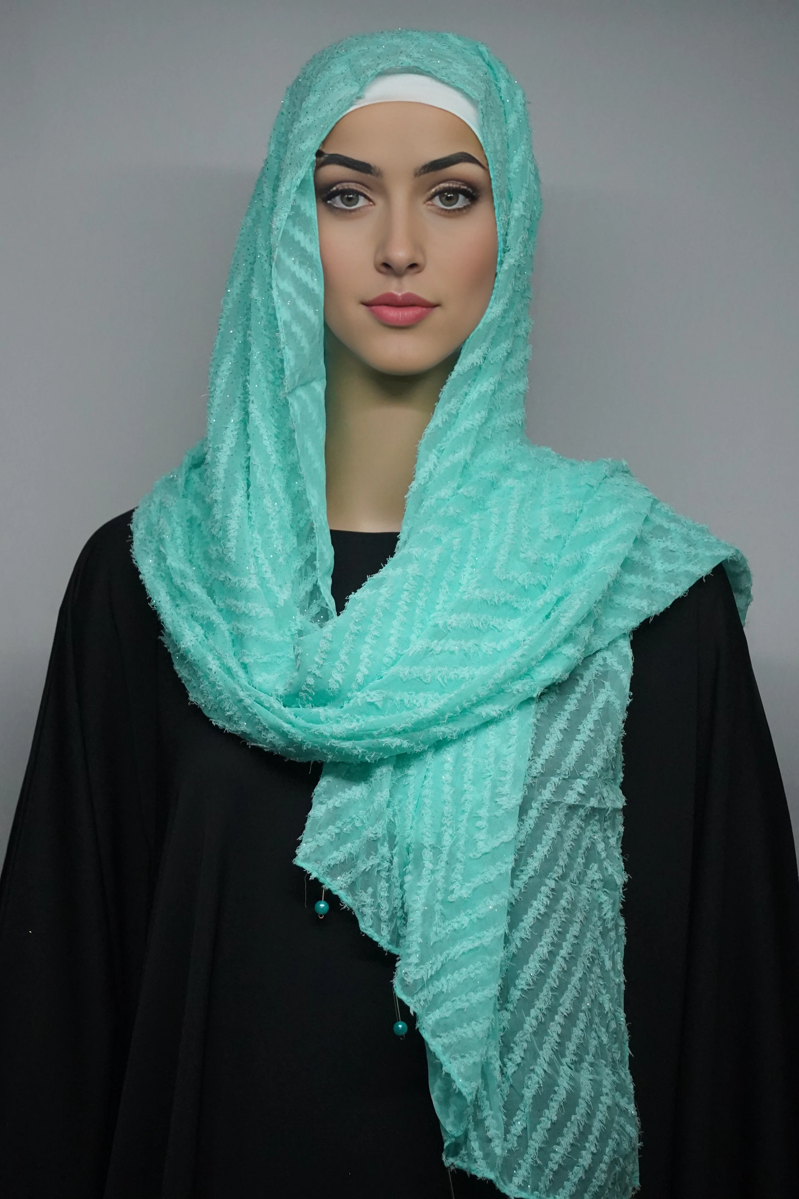 The gentle shimmer of the viscose fabric adds a subtle yet captivating sparkle, ensuring you shine with understated elegance. Embrace the soothing and sophisticated charm of this hijab and enhance your wardrobe with its tranquil appeal.