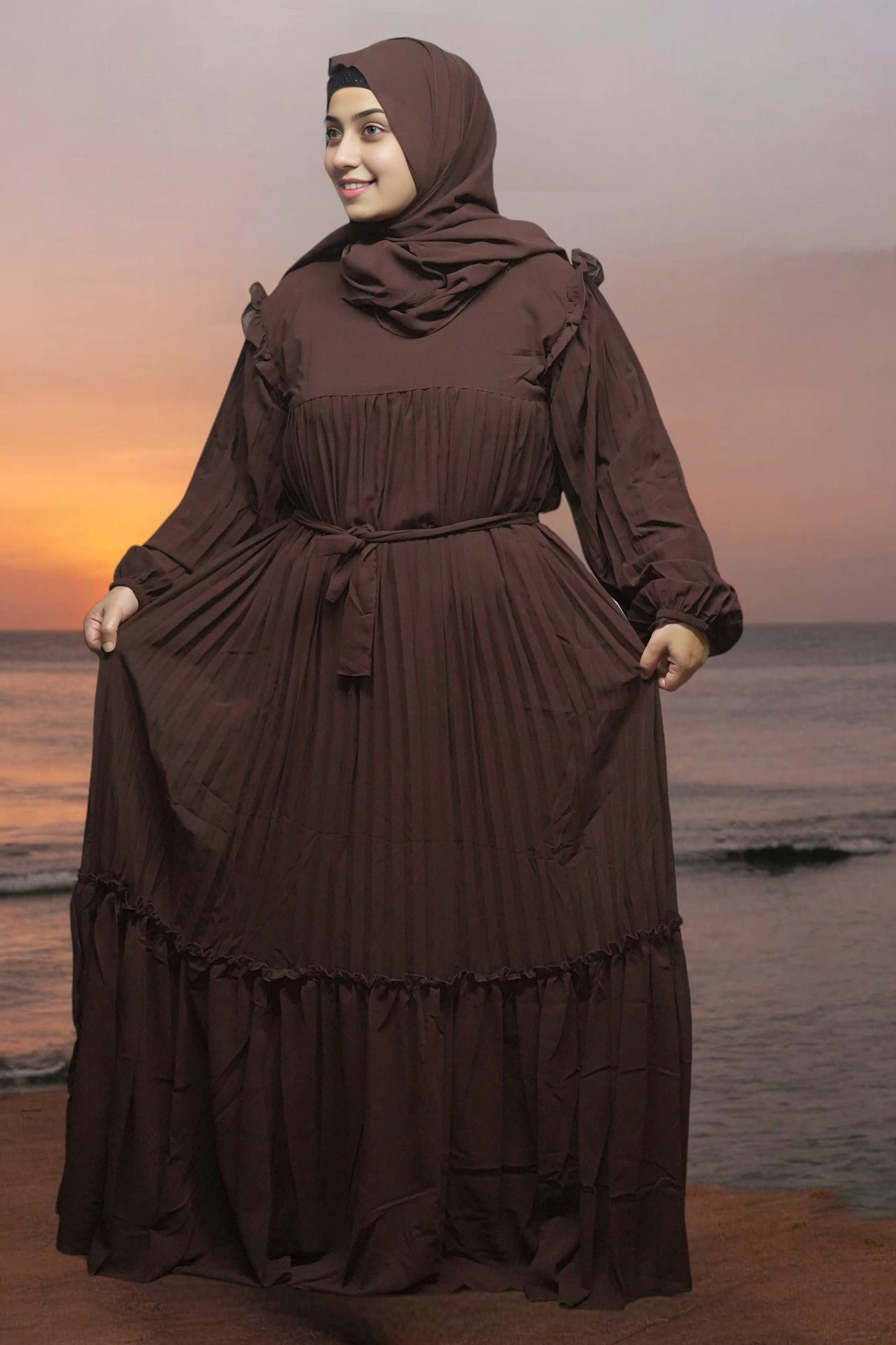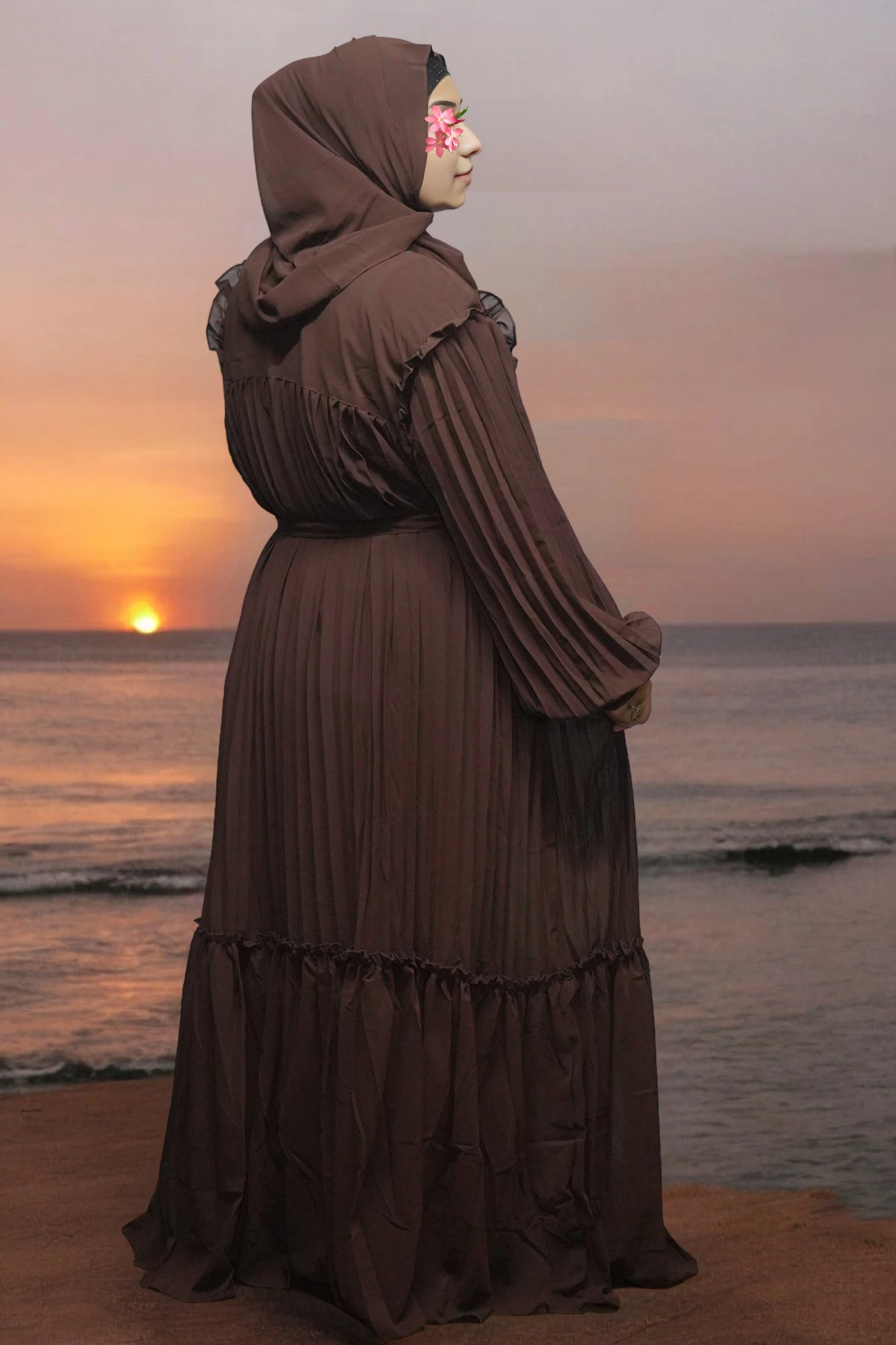 Choose our Frill Burqa in Brown and experience the perfect blend of classic style, comfort, and elegance.”