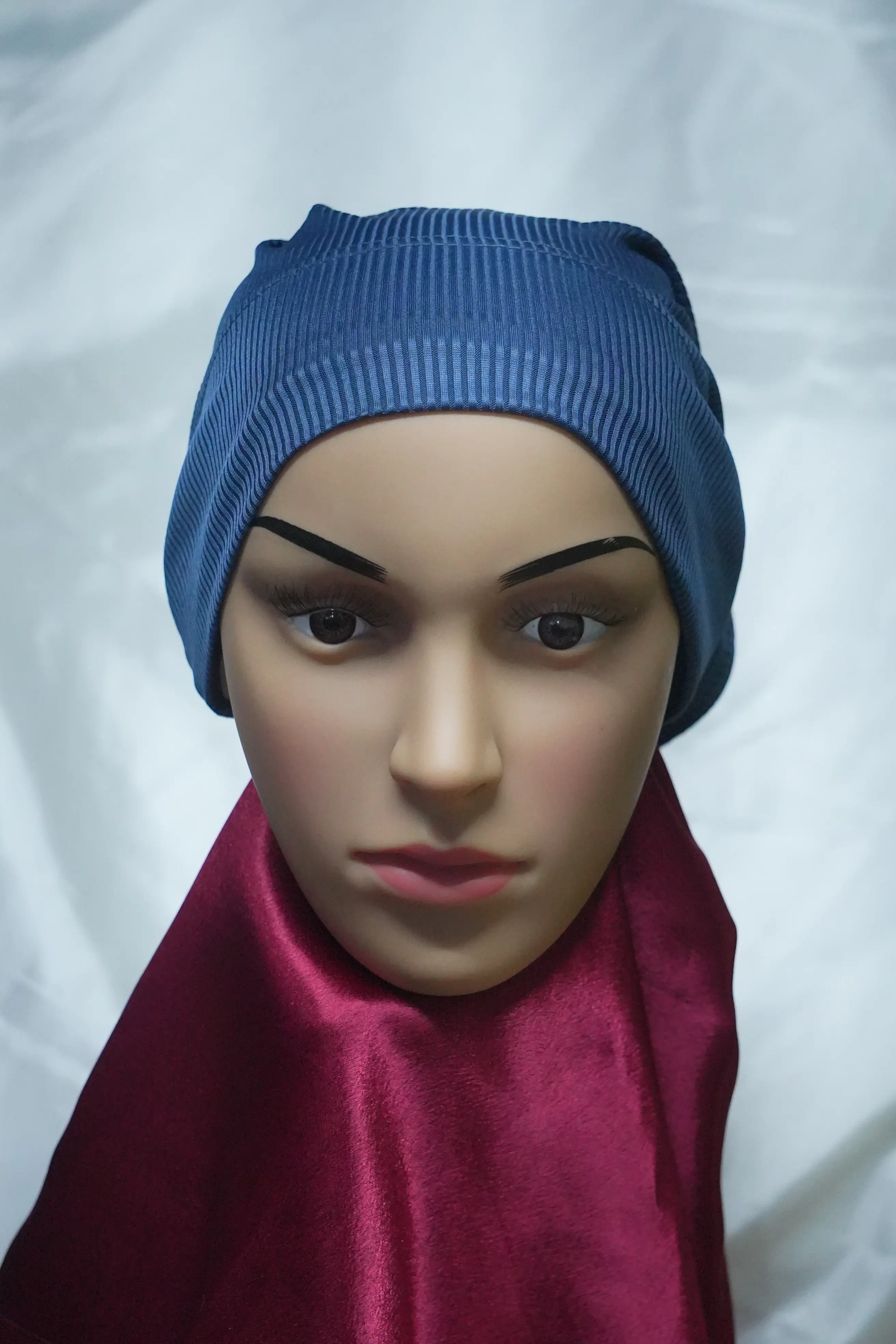 Discover the perfect blend of comfort and style with our Ribbed Tube Cap in vibrant blue, crafted from premium hosiery cotton. This versatile hijab cap offers a secure and breathable fit, making it ideal as a hijab undercap or hijab underscarf cap for daily wear.