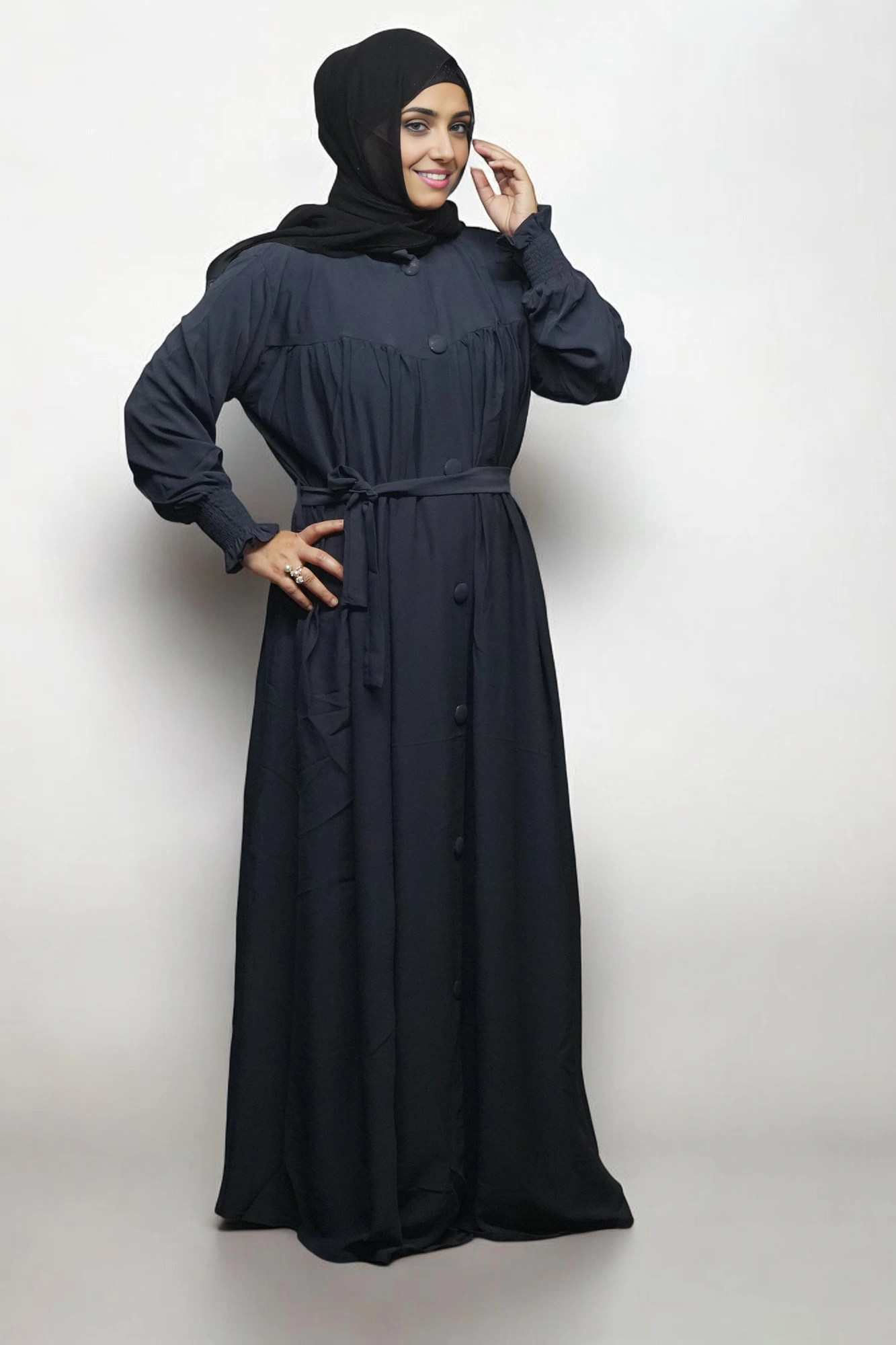 Turkish Burqa FULL BUTTONS OPEN Belt in DARK-GRAY M Size And (Dupatta 67X28)