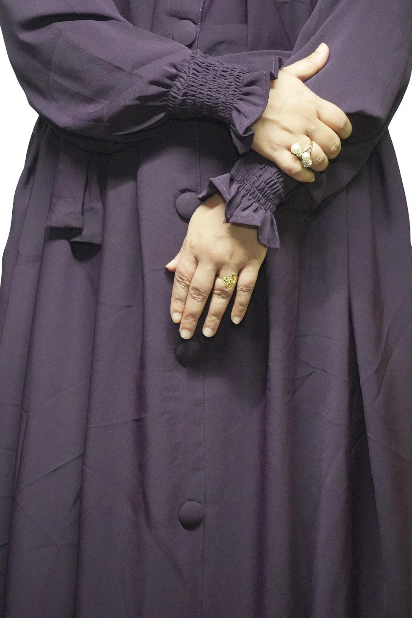Envelop yourself in the majesty of our Burkha FULL BUTTONS OPEN in Purple, a regal garment that combines captivating color, stunning design, and exceptional value. The rich, vibrant hue of purple has a profound effect on the senses, evoking feelings of Quality, creativity, and wisdom. The relaxed fit and flowy design of this beautifully crafted Burkha make it perfect for formal events or special occasions.