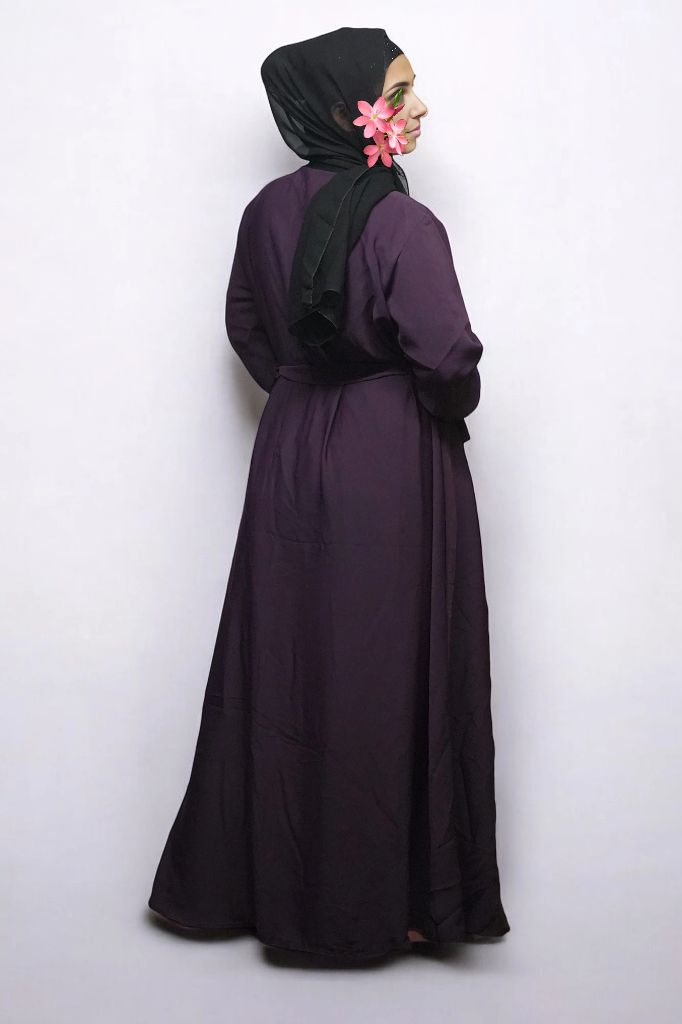 Indulge in the mystery and sophistication of our Burkha FULL BUTTONS OPEN in Dark-Purple, a captivating garment that combines rich color, stunning design, and exceptional value. The deep, bold hue of dark-purple has a profound effect on the senses, evoking feelings of luxury, creativity, and wisdom. This enchanting color is also associated with grandeur, elegance, and refinement, making it perfect for formal events or special occasions.