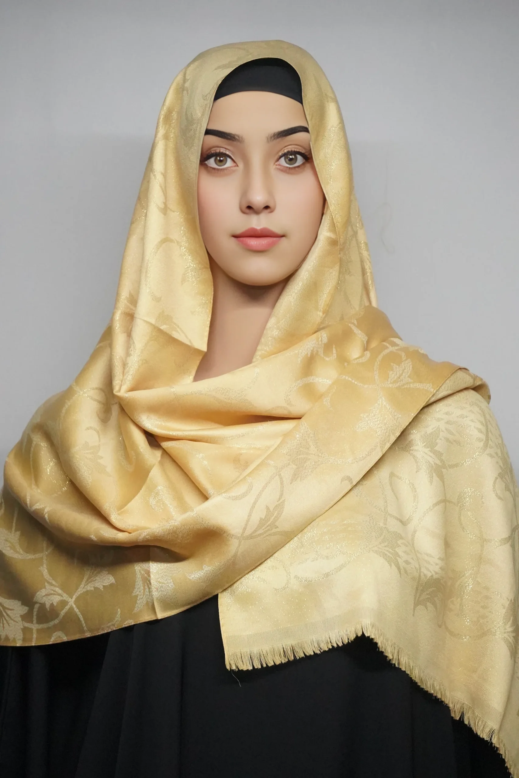 This gentle hue is perfect for adding a touch of softness and brightness to your outfit, whether for daily wear or special occasions. The delicate shimmer of the fabric enhances its beauty, ensuring you stand out with grace and sophistication. Embrace the serene charm of this hijab and enrich your wardrobe with its timeless appeal. Perfect for those who value both style and comfort.